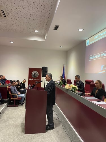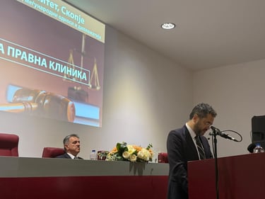 Фотографии од свеченото отворање на Граѓанската правна клиника при МИТ Универзитетот во Скопје. Настанот го означи почетокот на иницијативата за унапредување на правдата и поддршка на граѓаните.